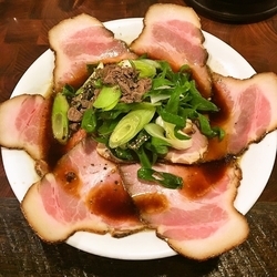 「特製 中華そば」(1100円)をいただいた。まず見た目に肉の量がすごいし、茶褐色の半透明のスープがテカテカして食欲をそそるルックス。スープからいただく。最初にしょっぱさ、ちょっと遅れてまろやかな甘みがきて、後味ブラックペッパーの辛味がのこる感じで一口で3段階楽しめ、クセになる。合わせる麺は自家製の弾力あるもっちりとした歯応えある中太麺。特製ということでトッピングには柔らかなチャーシューと歯ごたえある低温調理チャーシューがたっぷりのる。特に柔らかなチャーシューの方は脂身多くほろほろ、脂身が溶けていく感じでの独特な食感のチャーシューで抜群に旨い。
