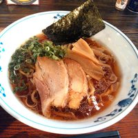 メニューは「中華そば」の(麺一玉)と(麺二玉)とトッピング(トッピングには生玉子もあり)のみとなっている。永福町大勝軒インスアパイアということでここは「中華そば(麺二玉)」(900円)をいただいた。銀のお盆に大きなレンゲ、大きな丼ぶり。煮干し効いた醤油スープは表面油で覆われアツアツ。麺は永福町大勝軒ほどの柔らかさではないがやや柔めの中華麺。チャーシューは4枚ほど入っている。永福町大勝軒の常連さんが食べたらどうかわからないが個人的にはよく出来たラーメンだと思う。この日は夏日だったので汗ダラダラの状態でアツアツのスープをいただいた。