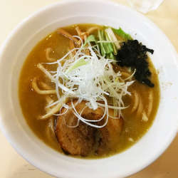 どんぶり一杯の溢れんばかりのスープ、表面はラー油で覆われており、味的には千葉のご当地勝浦タンタンメンに近いものを感じた。辛さそれほどでもなくぴりりと程よい辛さ。あわせる麺はさすが玉グループと思えるもので抜群の旨さ。低加水の平打気味の中細麺、スルスルっといただける。具材ぶ薄切り豚バラに平たい濃い色のメンマをざくぎりの正方形ネギ。ネギがこのからさによくマッチ。