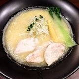 褐色でキラキラかがやくスープに特製ということで肉がドーンとのっている。かなり濃厚なトロリとした鶏白湯スープだ。鶏の旨みが凝縮されていてこれは美味しい。粘度があるので低加水寄りの細麺がよく絡む。具材はメンマではなく姫竹?ハチク?のような若い筍がのっておりこれが結構不思議な歯応え。鶏白湯にはよくあう刻み玉ねぎ。厚めで大きなチャーシューに加え特製にはゴロゴロと四角いチャーシューや味玉が加わっている。最近濃厚な鶏白湯スープが増えているがそんな中でもとりわけ濃厚だが濃すぎる人用に卓上には鶏白湯ラーメンのスープ割り用ポットも用意されているので安心だ。煮干しメニューも気になるところ。