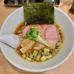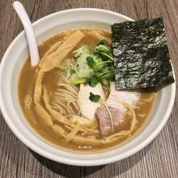 魚豚骨のメニュー名通り、ザラザラ感のある豚骨魚介スープ。豚骨と数種類の野菜を12時間炊いて3種類の魚介出汁と醤油を合わせたもの。シャキシャキ玉ねぎが沢山入っていて、濃厚スープによく合う。麺は中太ストレート。チャーシューはレア系。