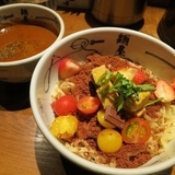 「小ラーメン豚入り」(850円)、無料トッピングはヤサイニンニクでいただいた。キャベツ多めずっしりした重みある野菜に豚たっぷりの重量感あるルックス。スープは乳化しており食べ始めはほどよくマイルドな味わいとなっており食べ進めていくうちにカエシの味がしっかりと感じられるようになった。麺はややデロっとした柔らかめの極太平打ちの麺。豚は脂身、塩気控えめ、かための部分とホロホロやわめの部分両方楽しめてよい。全体として二郎好きであれば、誰もが旨いと思われる一杯であろう。食べ終えて外にでたのが9時33分くらい。接客もとてもよく満足度高し。