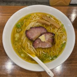 「ラーメン」(780円)+「豚増し」(200円)+「しょうが」 (100円)に無料トッピングはヤサイニンニクでいただいた。写真ではわかりにくいが豚を土台に野菜が乗ってる感じで豚量はけっこうある。オープン時のレビューをみると茶濁し乳化したスープのようだが、この日は、非乳化、豚の旨味凝縮した甘辛い醤油スープであった。麺は自家製、極太ではなく太麺。平打ち風の味的に自分には目黒二郎に近いように感じた。豚は柔らかな脂身あるところと歯ごたえある赤身、どちらも楽しめうまい。ニンニクももちろん合うけど有料トッピングのしょうががこれまたこのスープによく合っていた。