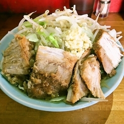 具材は海苔に小松菜、メンマ、ネギ、2種のチャーシュー、味玉。チャーシューはしっとり鶏チャーシューと生ハムのような薄くて大振りな噛みごたえあるローストポークチャーシューがのっている。やや大振りに来られたネギがこのスープにはよくマッチし印象的であった。