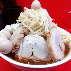 麺が茹で麺機ではなく、大きな鍋にテボを入れて茹でている。その後、平ザルへ移行。麺はたぶん同じだが、茹で上がりの印象が若干違って固め。スープは同等だが開店二日目で師匠と同じスープを出せたら「八雲」の十数年の歴史は何だったんだ、ということになる。(^^;