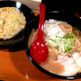 今回は「ラーメン」(750円)を”こってり”でいただいた。炒め野菜が盛られ、そのとなりに黒々としたセアブラという迫力あるルックス。スープは半濁の醤油であっさりめ。そこに炒めた肉野菜の旨みが溶け出している。セアブラはつぶは大きめで表面が焦がしてあり、その焦げの香ばしさとほどよい苦味がよいアクセントととなっている。麺は自家製の重厚感あるワシワシした歯ごたえの太麺。量も300gとボリューム満点だ。