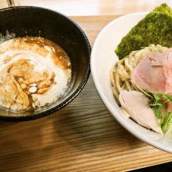 開店時間の11時ちょうどくらいに店頭に着くと15人くらいの待ち。うひゃ〜予約してもこうなるか〜と思ったら、大半が予約無しで来店した人。結局、私は予約した中では10番目。券売機で食券を購入して入店なのだが、私が購入する頃には予約無しの人数だけで10数人待ちになっていた。やっぱり予約して来るに限る。予約無しは半分以上が外国からの方。今はミシュランには載っていないが「世界初のラーメン一つ星」はいまだに影響あるのだろう。