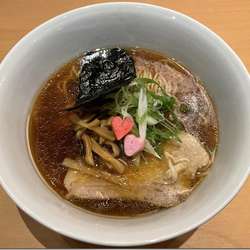 スープは近江牛の清湯塩味、背脂は松阪牛。これも後で知ったのだが、背脂増量は無料だそうで、店主も動画で増量を勧めていた。くぅ〜、背脂好きなので予習してから行くべきだった。。。というか、知った仲なのに、たくちゃんも言ってよねぇ〜。(笑)