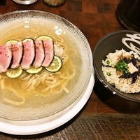 見た目が実に綺麗。写真よりも実物の方が綺麗。スープは鯛がベースでもちろん冷たい。鮮魚系は冷やすと臭みが出ることがあるが、これはそんなことはなく、爽やかに飲める。しっかり水で締めた自家製麺も合っている。