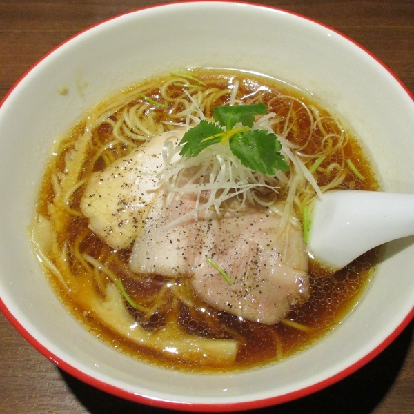 店主は、「せたが屋」グループ各店の店長を歴任。大山鶏のガラや御殿鶏の丸鶏、トンコツをベースに煮干し、アジ干し、宗田節等の厳選された素材をふんだんに使いあっさりしながらもコクのある一杯に仕上がっている。