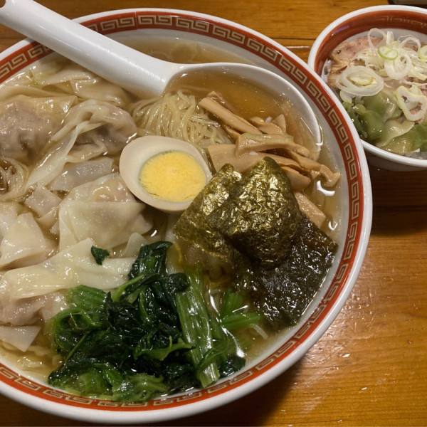 五反田や中目黒にある「広州市場」の支店。「赤鶏のガラと新鮮な野菜を使い素材のうま味を引き出すよう、じっくり煮込んだスープ「清湯(チンタン)」がおススメ。」だそう。焼き豚は、かなり分厚く、食べがいがある。塩ワンタン麺はさっぱり系。チャーシューは焼豚と煮豚の選択が可能。