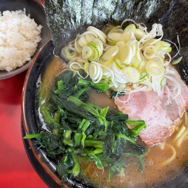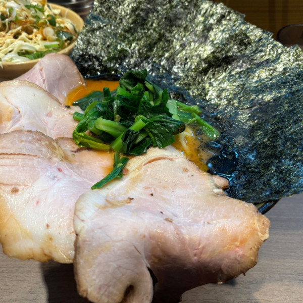 横濱家系ラーメンの総本山「吉村家」直系のお店。豚骨醤油に鶏油、王道の横濱家系のラーメン。