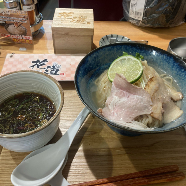 埼玉県川口市栄町3-5-15マップで見る塩そばの名古屋コーチン使用と掲げられた鶏清湯出汁は独特の香りを放ったが一口啜ると旨味が凄く感じなくなった。麺は低加水細スト麺で歯応えしっかり。2種類のレアチャーは香草で上品に香り付けされ旨し。