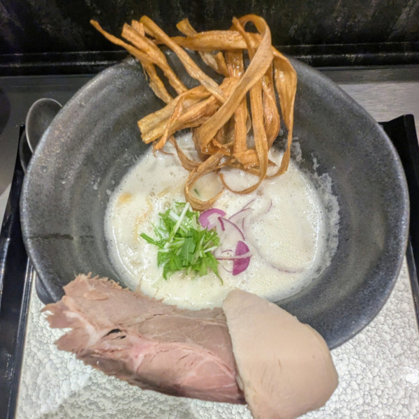 東京都千代田区丸の内1-10-9マップで見る香るしっかりとした麺、動物の香り、胡椒、ニンニク、お酢の味変からほうじ茶?のスープ割、ネギの存在感までどストライクです。期間限定の麻辣つけ麺食べたけど、辛味だけなら卓上調味料で充分追いつく。