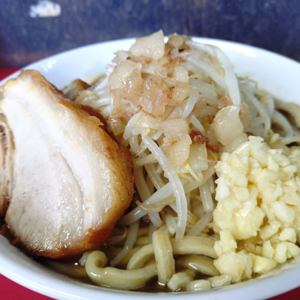 二郎インスパイアの豚骨醤油に太麺、野菜がたっぷり入ったガッツリ系ラーメンを提供。