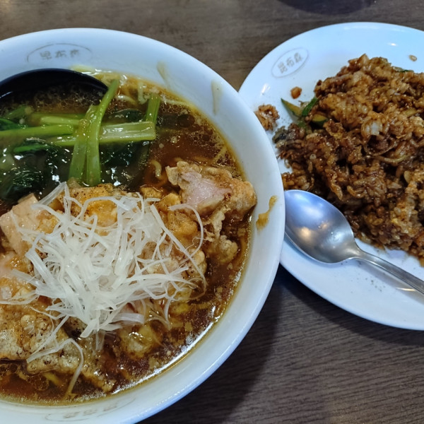 埼玉県朝霞市仲町2-3-3マップで見る赤ネギ味噌ラーメンの豚骨ベースに円やかな甘目の味噌を効かせたスープは濃厚で飽きない。麺は多加水中太ウェブ卵麺で伸びに強いもちもち歯応え。山椒がピリッと効いた葱もスープと相性良く旨し。