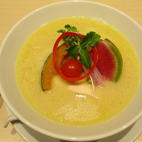 東京都豊島区池袋2-48-7 アパホテル1階マップで見る中華そば塩の動物清湯出汁に貝出汁のコハク酸の旨味が濃縮されたスープは感無量。麺は加水高目の中細平スト麺で麺肌ツルツルで旨し。