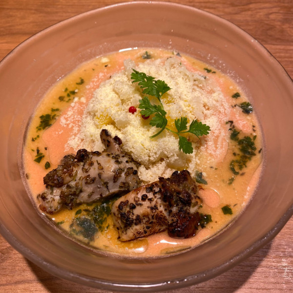 東京都大田区蒲田5-34-4マップで見る濃厚牡蠣煮干そばの動物白湯出汁の乳化したトロトロに牡蠣と煮干の風味がガツンと主張したスープは濃厚で麺にしっかり絡む。麺は菅野製麺所さんの低加水中細スト麺でポキポキ歯応え。レアチャートロトロで旨し。