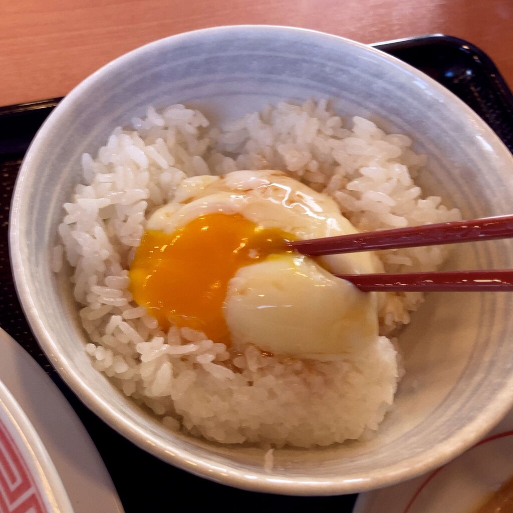 麺の半ばで、ようやく玉子かけご飯が到着。コチラのTKGはちょっと変っていて、生卵ではなく温玉が載っかっています。誤算は、せっかく炊きたてのご飯で提供して貰ったのだけど、上に載る温玉が冷蔵庫から出したばかりのような冷たいものだったので、黄身に箸を突き立ててTKGに変貌させていただいても、全体に温い感じになってしまったことw 詰めが甘いw でも、生卵よりもねっとりとした黄身が絡んだご飯は美味しかったw