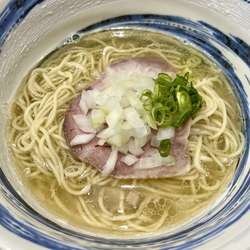 スープはしっかりと上質な煮干が香る清湯系塩ニボ。