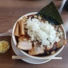 地元にできたぶたけん。3rdへ初訪。Xで夜営業が無いと聞いたため急ぎ身支度し関東方面へ移動🚄なんとか営業時間内に到着することができた。らーめん 豚1枚追加、しょうがトッピングでオーダー。10分前後でコールを聞かれ、「ヤサイスクナメニンニクカラメ」と返答後に着丼。乳化によるものか、かなり甘めのスープ。生姜焼きのタレにも似たアマジョッパイ風味というのが比較的近いか。ニンニクは刻みが大きめのものもありスープに溶け込ませると美味い。豚は直系でもよくあるアタリ気味のものと赤身が混在した豚。途中しょうがを混ぜ込むと甘めのスープが引き締まり良い変化。一味やBPとも合う。全体的なバランスが良い一杯。これは良い店が地元に出来た。ちょいちょい訪問する。