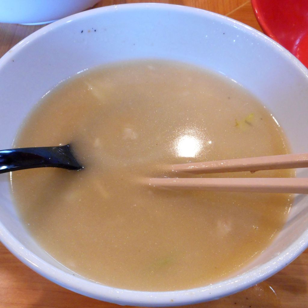 しばらくして、まずはつけダレから配膳。高温で豚骨を炊き出している同店ならではのスープですが、この日はいつも以上に乳化が進んでいるかな。それにしても??