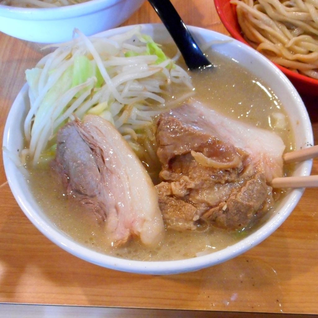 2015年、梅雨限定のなみのり始まりました~ 始まって最初の休日でしたが、午前中に所用がありシャッターとは行かず、午前の部終盤に息子同伴での出撃となりました。http://livedoor.blogimg.jp/nsashi55/imgs/3/2/328bf689.jpgまずはビール。この日は通常のスーパードライで乾杯! (^_^)/□☆□\(^_^) !しばらくして、まずはつけダレから配膳。高温で豚骨を炊き出している同店ならではのスープですが、この日はいつも以上に乳化が進んでいるかな。それにしても??何この豚 ?! コールしてないのにアブラの塊でも入っているの?http://livedoor.blogimg.jp/nsashi55/imgs/4/d/4d24752e.jpg箸とレンゲを使ってひっくり返してみると、外周にアブラの層を纏った立派な豚。大きさ的には全体で豚入り並かそれ以上かも。皿に盛りつけたら、単品でラーメン一杯分以上の値段がつく一品料理みたい。http://livedoor.blogimg.jp/nsashi55/imgs/f/5/f5533b26.jpgでは実食。まずつけダレを少々。角の丸められた、甘みを感じさせる塩ダレの味が印象的。凶暴な感じはありません。ブラックペッパーの効いたスパイシーさはあるものの、まったりとした味わい。美味しいです。前々回の限定・塩ドクロと同一の塩ダレで作ったつけダレのような印象。醤油ベースの通常のつけダレの、適度に酸味が効いてキリッとシャープな印象とは対照的です。豚はふわトロ。外周の脂身が口の中で蕩けてなくなり、塩ベースのつけダレの味わいとシンクロしている印象。http://livedoor.blogimg.jp/nsashi55/imgs/7/2/727adb0f.jpg麺の方は、いつもの野猿麺。しっかりと水で〆られたモキュモキュとした食感。そこまで極太ではないので、つけダレに浸してズバーァーと啜ることも苦ではありません。何度か漬けては啜るを繰り返し、短時間で全量終了。ここ数年はこのメニューをいただいていなかったので、前回のなみのりとの比較はできませんが、美味しかったのは事実。http://livedoor.blogimg.jp/nsashi55/imgs/a/6/a661b6a8.jpgコチラは、レギュラーメニューはもとより、折々に繰り出される期間限定メニューも客の期待の的になっています。直前のアブラッXは、タイミングが合わずいただけなかったので、来年の課題。今年、このなみのりの後は・・・冬の味噌と丸鶏か。ともあれ、今年は梅雨が長引きそうとの予報もあり、あと何回かはこのメニューをいただいてみたいと思った一杯でした。
