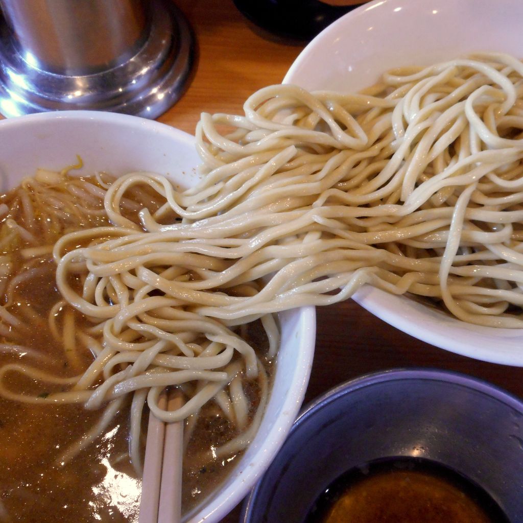 さて麺。豚とヤサイ半分ほどをやっつけたつけダレ丼に麺をダイブさせて啜ります。ザクッと破断しモキュモキュと音を立てて咀嚼、そして胃袋へ。ここのは、つけ麺に特化した麺なんじゃないかって気さえするほど、つけ麺向きの麺ですね。野猿の麺はホント美味しい。ノンストップで食べきり、入店順を守り退出。