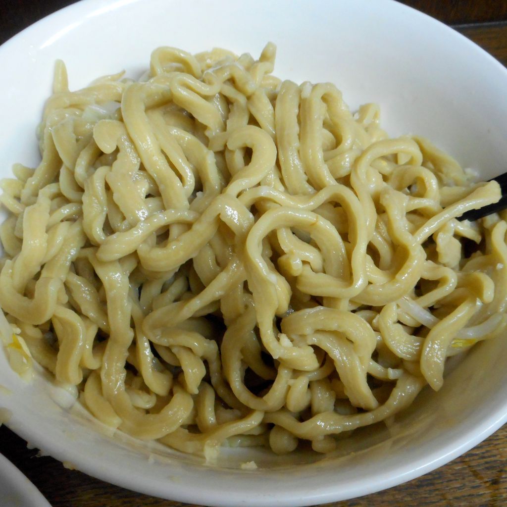 ためしに麺を一本そのまま口に運んでみると、数年前に登戸のお店でいただいた時よりもさらに硬い剛麺です。水で〆たとはいえ、その上に熱々のヤサイを載せて配膳された関係でヌルくなってしまったのは残念ですが、このスタイルではいたし方ありません。