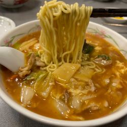 中華屋さんらしくない茹で加減が良くモチモチした中太麺。