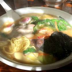 スープは白濁としており動物系のしっかりとした味わいが感じられます。炒められた具材がのっていますので、スープの白濁感は炒め野菜によるものかな。なかなか好きな味わい。