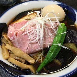 | メニュー | メニューの写真を見る まるひろ限定 冷やし煮干しそば 黒醤油夏野菜添え 800円 |