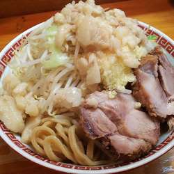 口頭注文でニンニク普通、ヤサイすくなめ、アブラおおめで注文しました。