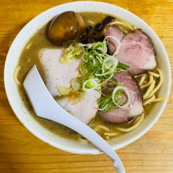 上品で味わい深いスープに、佐野から直送される青竹踏みのコシのある平打ち手揉み麺がよく合います。チャーシューもとても美味しいです。