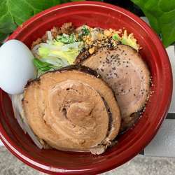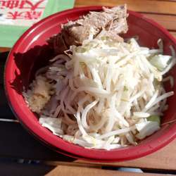 | メニュー | メニューの写真を見る 二郎系まぜそば豚一枚700 |