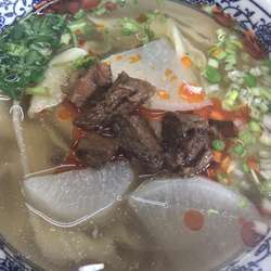 平日の夜7時30分頃に訪問。店内満席で外で5人待ち。なかなか店内から食べ終わった客が出て来ません。約15分後に出て来た客と総入れ替えで店内へ。店内はカウンター7席のみ。しかも自分が座った席は、他の席から床が少し低くなっているので、少し食べづらかった。外国人のマスターが一人一人順番に注文と麺の種類、パクチーは大丈夫かを聞きます。その間にイスラムのビジャブを被った奥様?が水を出して... 続きを見る
