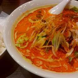 【注文】担々麺・黄・辛め(780円)+ライス(無料)。担々麺は5色から選択可能。これは桜木町の四川麻辣火鍋 天府と同様。ライスは炊飯器から自分で盛るスタイル。