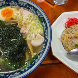 「半チャーシュー麺海苔増し、半ライス」@しょうゆのおがわや 厚木246号店の写真家系通算772軒目は厚木家から少し南下したこちら