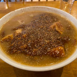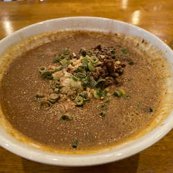 ジンワリとした旨味のスープに花椒の効いた本格的な麻婆豆腐が乗っていて美味。でも飯かな?