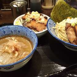 | メニュー | メニューの写真を見る つけ麺全のせ(ゆず・かつお・カレー) 1050円 |