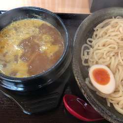ぐつぐつ煮立った鉄の器で配膳。基本は鶏豚動物系の濃厚なスープのようで、つけ麺の場合は、それらに加え魚介と3... 続きを見る