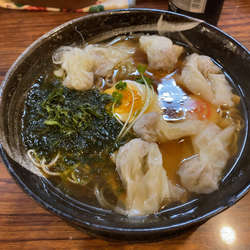 あっさり鶏ガラスープに合う細麺が印象的。あっさりしてるので飲んだ後も食べやすい。ワンタンの味付けは濃いけどニンニクがかなりきいてて珍しく美味しかった。