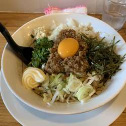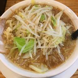 18/11/4訪問。過去分ですが、閉店しているので、足跡を残させていただきます。ラーメン(720円)を、ニンニクで。スープは、やや濁りのあるものの、かなりライト。麺は、ごわつきのある平打ち太麺。野菜は、キャベツ率まぁまぁで、シャキシャキ。チャーシューは、バラが一枚。コールは先。野菜の量と、ニンニクの有無を聞かれる。総じて、二郎再現度は、かなり低めな印象。