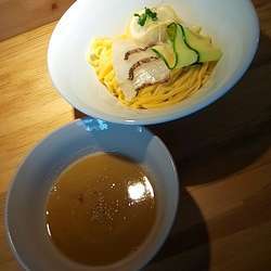 | 備考 | 2018年5月より真鯛らぁめんを提供開始。 店主が渡伊経験をもつイタリアンのシェフらしく イタリアで教わったパスタソースから着想を得て レシピはイタリアンの技法を駆使して仕込む。 愛媛県産の真鯛と野菜のみでとったスープは、 白ワインやシチリア産の塩を使い (オーブンでローストした真鯛の頭と 丹念に炒めた中骨を炊き込み、丁寧に裏漉しして完成させた 旨味が凝縮した鯛白湯は熱が下がると 表面にコラーゲンの膜が張るほど濃厚。 またドライトマトやセロリなどの 野菜の香りや甘みが溶け込み軽快な口当たりで優美な味わい) 化学調味料無添加で豚骨や鶏ガラなどの動物系素材不使用。 香味油も真鯛から出る油の鯛油のみを使用。 真鯛らぁめんで使う大栄食品の平打ち中太麺は、 生パスタをイメージしており、 セモリナ粉とオリーブオイルを配合。 卓上の自家製食べるホットオイルは 半分ほど食べた後の味変にどうぞ。 (以上はチラシおよび取材より) |