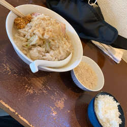 11時半開店と共に入店。先客なし。後客3名。水はセルフでコップはジョッキ。辛揚げやマヨネーズなどは水のところにまとめてありました。席はカウンターのみ。