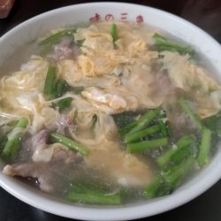 以前に末広町の住宅街の裏路地を歩いていた際に、ひっそりと佇むノスタルジックな【中華 味の三恵】の外観が気になっていたのですが、その日は行けなかったためこの日に改めて訪問して、通りがかった際に見えたメニューで気になっていた≪ニラ玉そば(塩)≫をチョイスしていただきました🍜