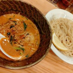 よく引きしまった太麺。出されるときにレモンをかけてと言われました。つけダレはスパイスが絶妙に効いた辛スープ。辛味噌っぽくもありどこかアジアンぽくもあり、独特なスパイス使... 続きを見る