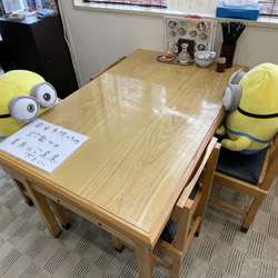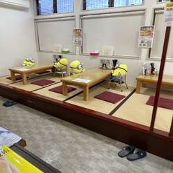 感染対策で間隔を開ける為ミニオンの人形が置かれています😲