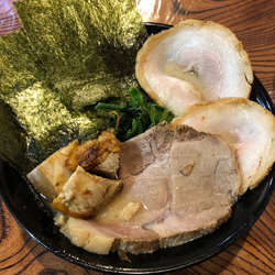 キリリとした醤油が効いた豚骨スープは、どちらかと言えば直系の家系の味に近いような気がします。麺はシコシコとした歯ごたえのあるもので、家系のものとは異なる気がしますが、これはこれでおいしく食べられます。チャーシューは味わい深く、良かったです。