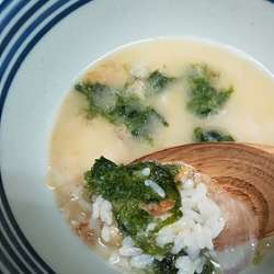 鯖の旨みがたっぷりのつけ汁、底に沈むのは鯖のほぐし身?